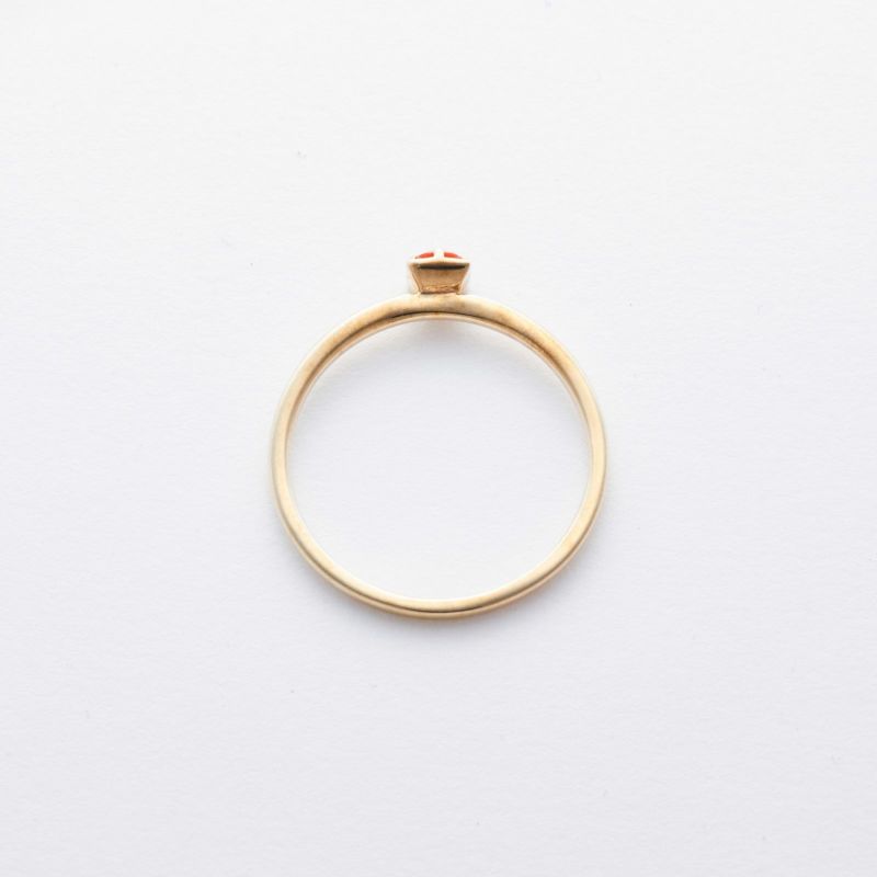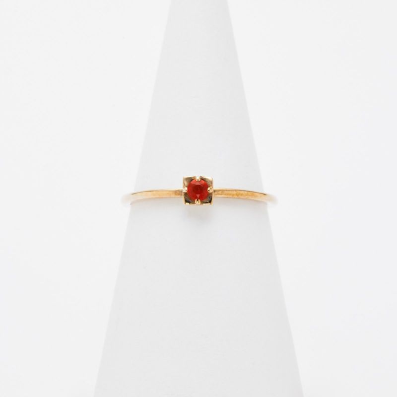 一粒でもご満足いただけるよう、存在感のあるシルエットにこだわりぬきました。ラウンドのカラーストーンをスクエアの台座に留めた、珍しいシルエット。2.5mmのジュエルが、実物以上に大きく見えるオリジナルでデザインです。