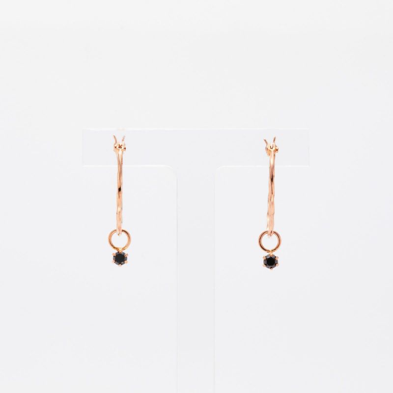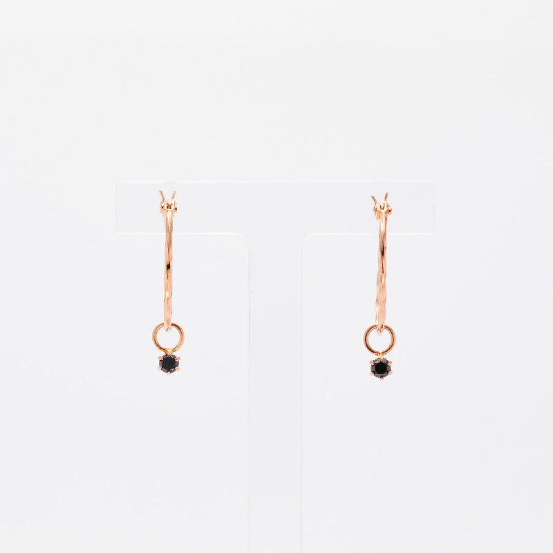 【OUTLET】K10ピンクゴールド ブラックダイヤモンド ピアス ハムネット