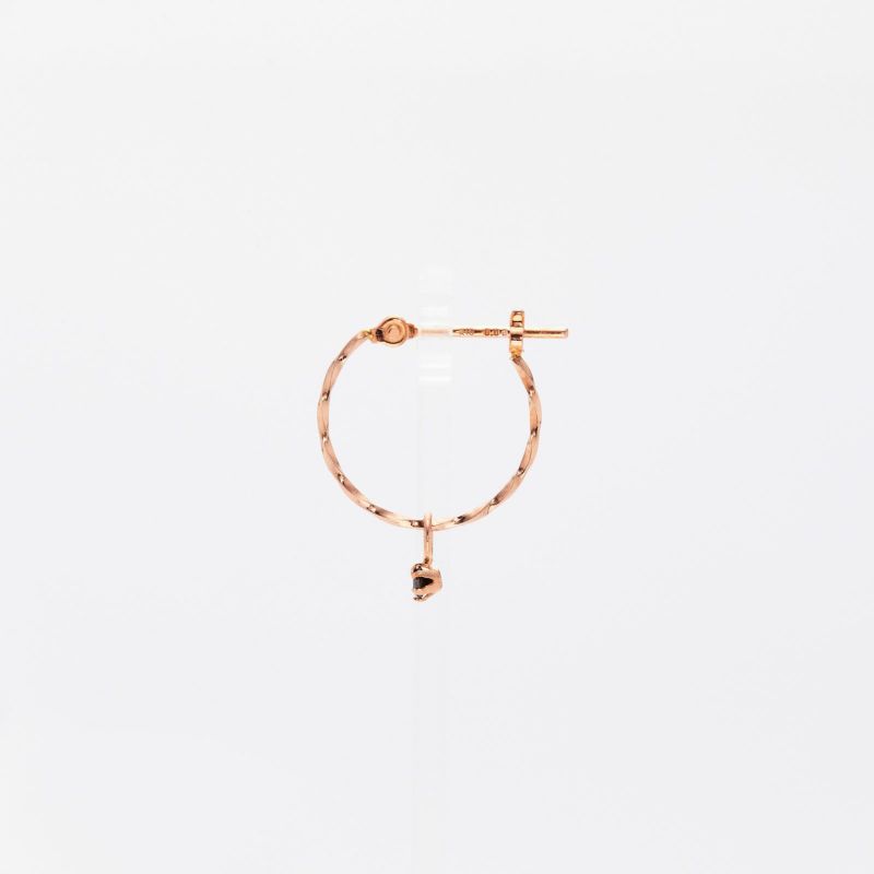 華やかに煌くダイヤモンドピアスは、 女性なら定番に1つは欲しいジュエリー。くるくるとねじられたような 繊細な細工をほどこしたフープにちょこんとあしらった 小粒でも輝きのいいダイヤモンド。