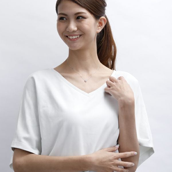 細部にまでふんだんにダイヤモンドをあしらった上質なネックレス。シンプルなフォルムはしっとりと肌なじみも良く、女性らしい首元を演出してくれる。