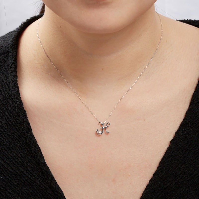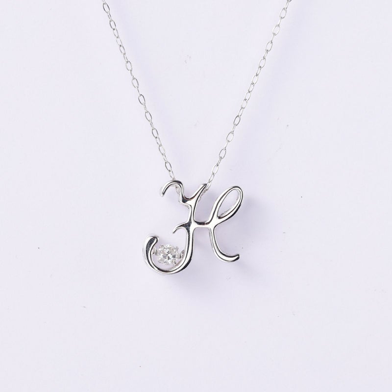 イニシャル「H」のモチーフの中にダイヤモンドを留めたダンシングストーンネックレスです。お名前はご両親から頂く最初のプレゼントです。イニシャルモチーフは一生モノのジュエリーとしてお召し頂けます。
