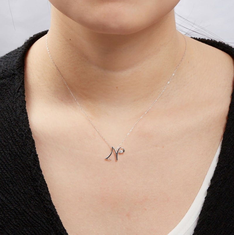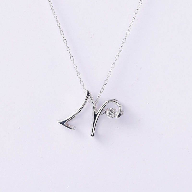 イニシャル「N」のモチーフの中にダイヤモンドを留めたダンシングストーンネックレスです。お名前はご両親から頂く最初のプレゼントです。イニシャルモチーフは一生モノのジュエリーとしてお召し頂けます。