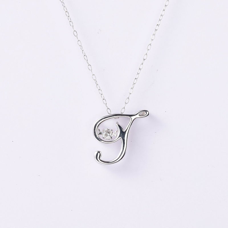 イニシャル「T」のモチーフの中にダイヤモンドを留めたダンシングストーンネックレスです。お名前はご両親から頂く最初のプレゼントです。イニシャルモチーフは一生モノのジュエリーとしてお召し頂けます。