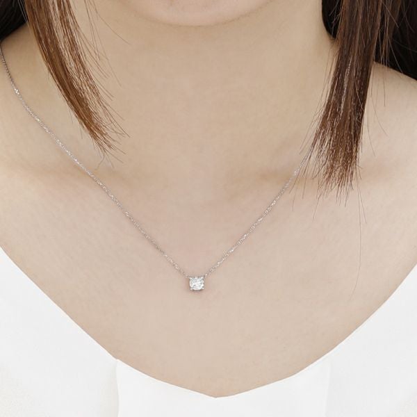 一見すると大きな一粒のダイヤモンドに見えるデザインは、実は沢山のダイヤモンドの集合体。クラシカルで上質なネックレスはリングとセットでつけるのもおすすめ。