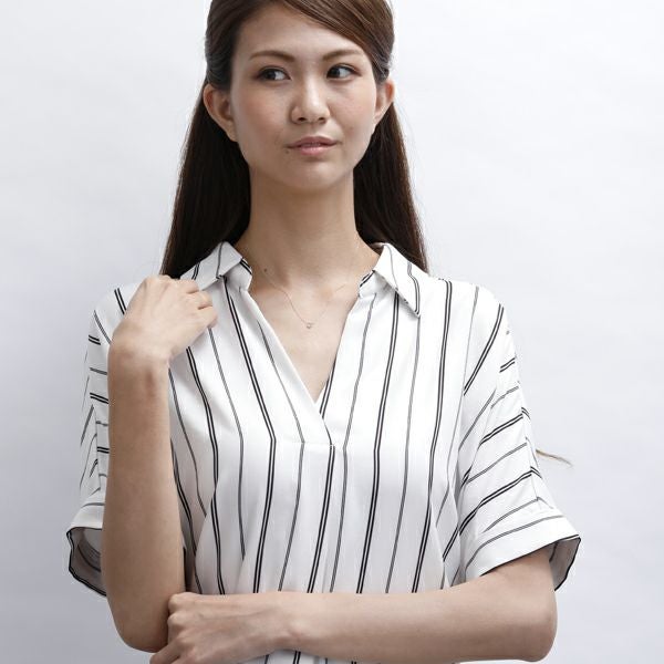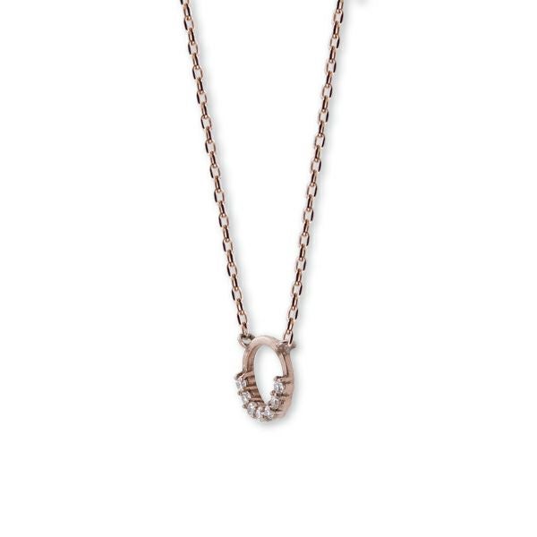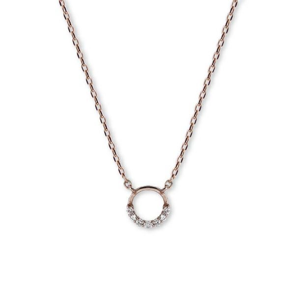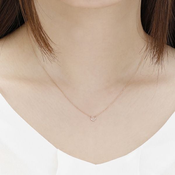 日本人の肌になじむピンクゴールドをベースに極小のダイヤモンドが煌くフープチャームネックレス。