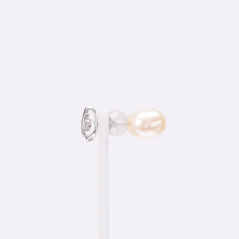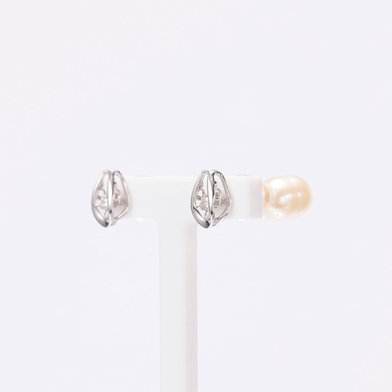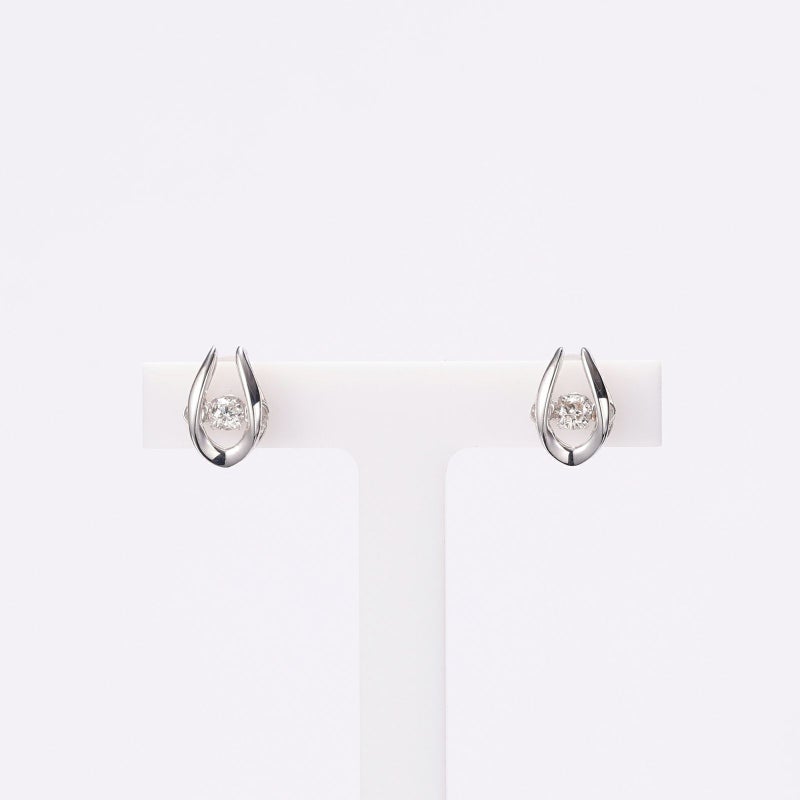 馬蹄モチーフの中に揺れるダイヤモンドをセッティングしました。ダンシングストーンは揺れるたびに光を捕まえて、強いきらめきをお楽しみいただけます。光を反射しますので、お顔までぱっと明るくなります。淡水パールのキャッチも差し上げます。お好きなキャッチをお使いください。