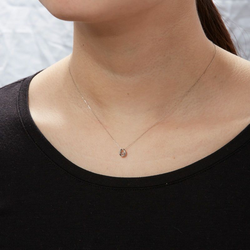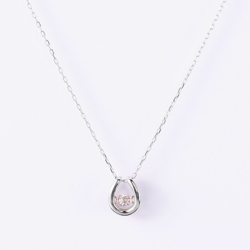 馬蹄型のモチーフにピンクダイヤモンドをセッティングしたネックレスです。2本目には揺れるピンクダイヤモンドをぜひお試しください。