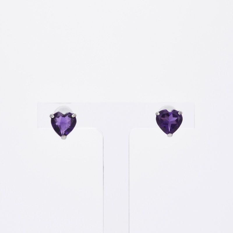 1石のハートシェイプアメジストをセットしたプラチナ900のピアスです。シンプル&可愛い一品です。