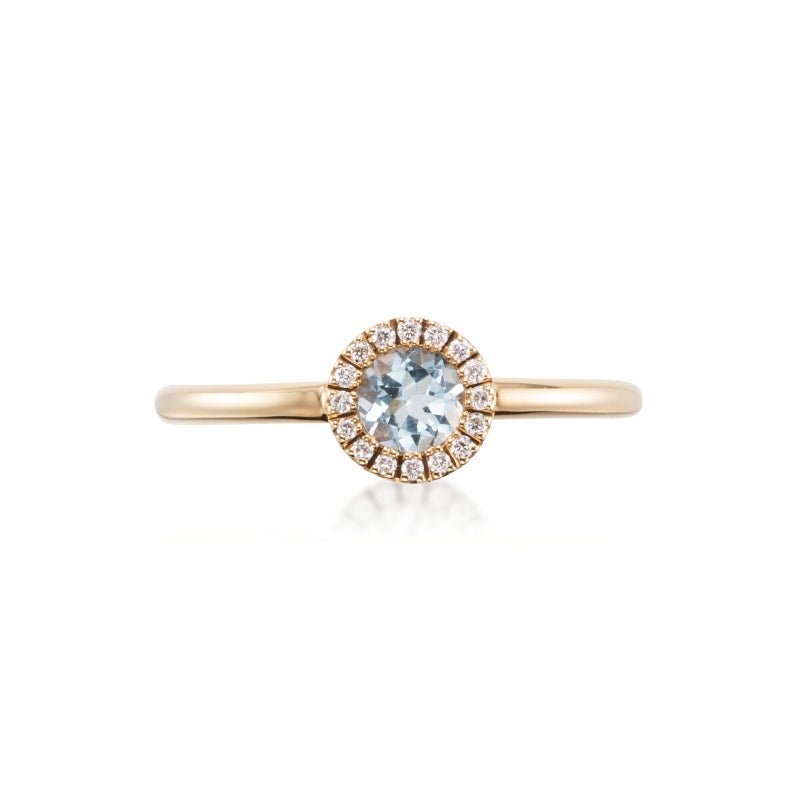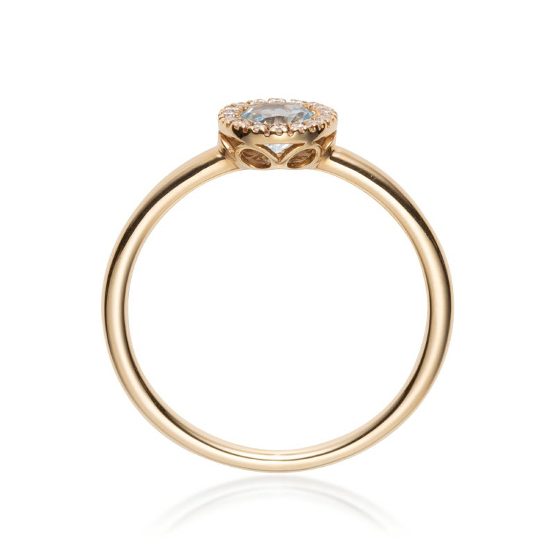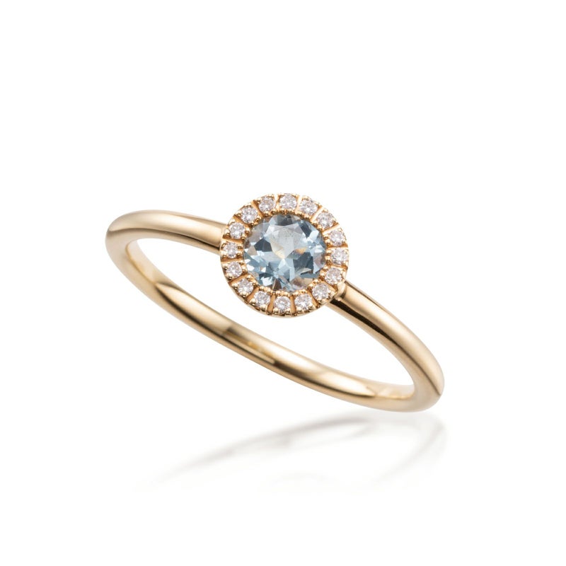 マイクロセッティングのメレダイヤモンドの中心に美しいカラーのアクアマリンを留めました。プレシャスという最愛の人という意味の名前が付けられたこちらのリングは、12ヶ月分のご用意がございます。お守り石としても、プレゼントとしてもご愛用下さい。