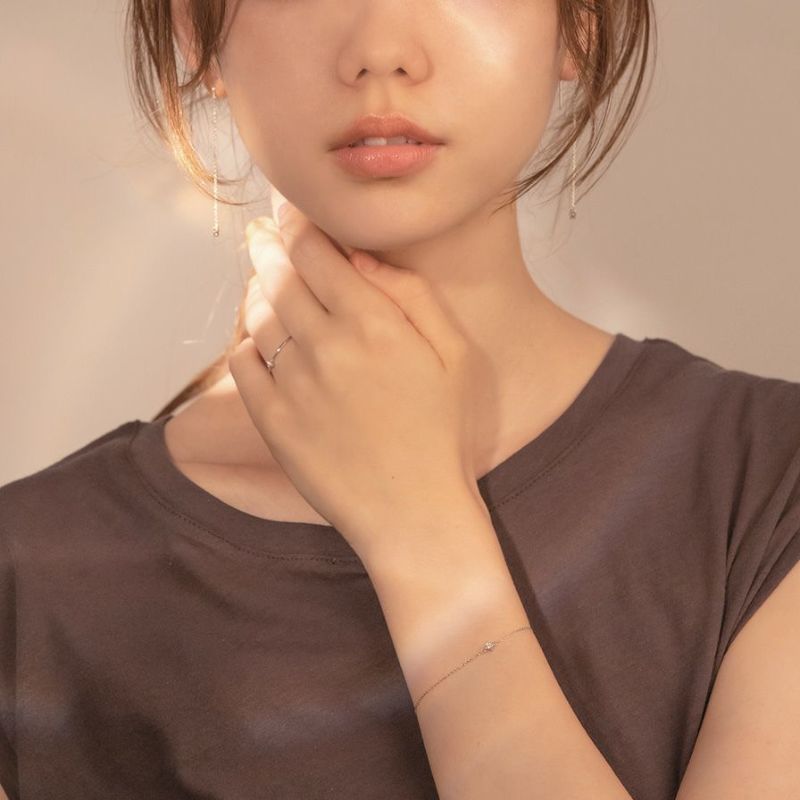 4本爪のダイヤモンドブレスレットは気負わずに着けられるサイズ感が人気。普段のコーディネートにプラスするだけで女性らしさも気分もグッとあがる。