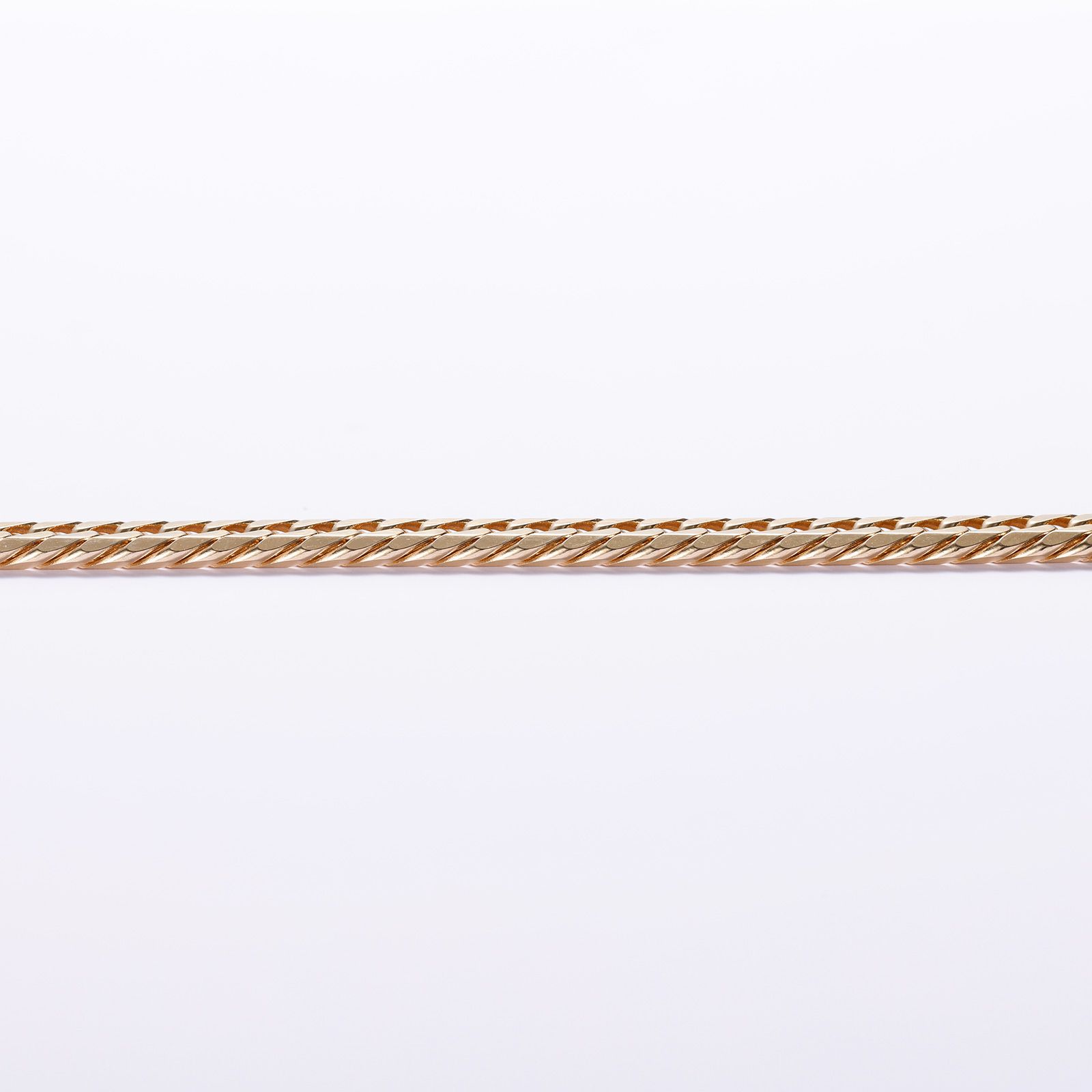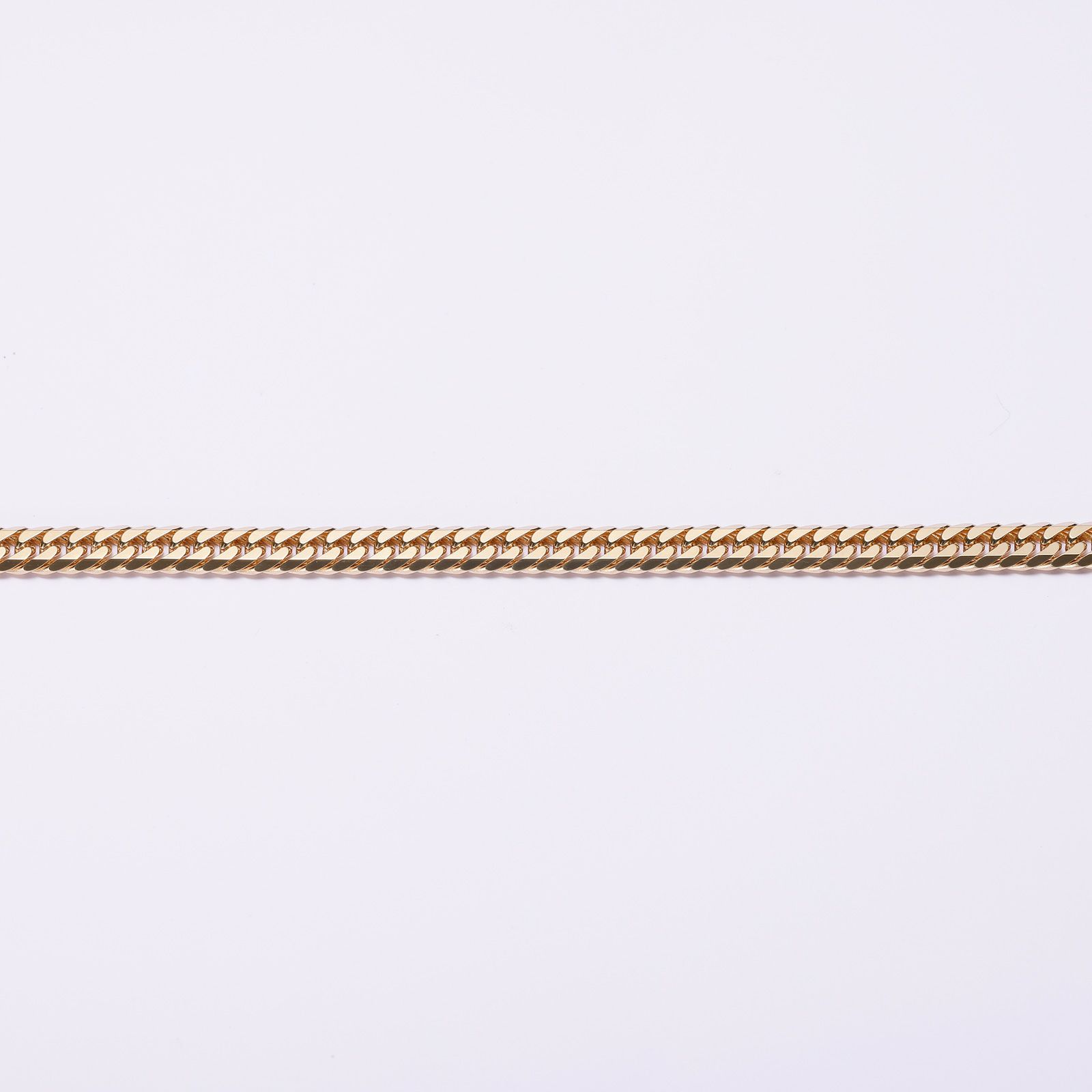 上下左右にカットを施した、輝きのある6面カット喜平です。幅広く見え、カットが多い分輝きが増すのが特徴です。シンプルなチェーンはユニセックスにご愛用いただけます。独立行政法人造幣局の検定マーク(※ホールマーク)入り。