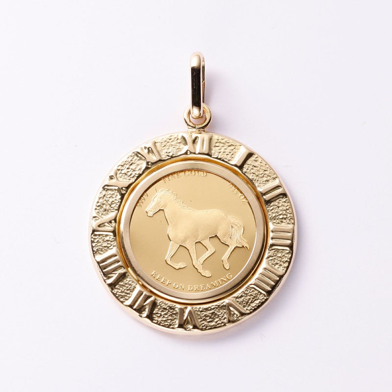 純金コイン ペンダントトップ (K18イエローゴールドフレーム付) 1/25oz ホース