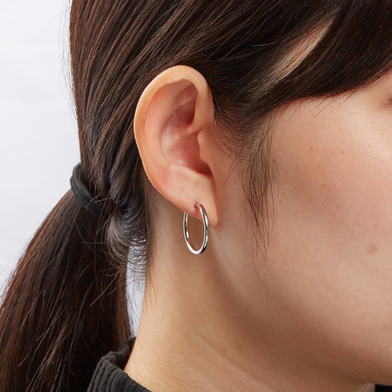 フープのピアスを作成しました。シンプルな甲丸のデザインは重ねて着けても、それだけ着けても、存在感を放ちます。