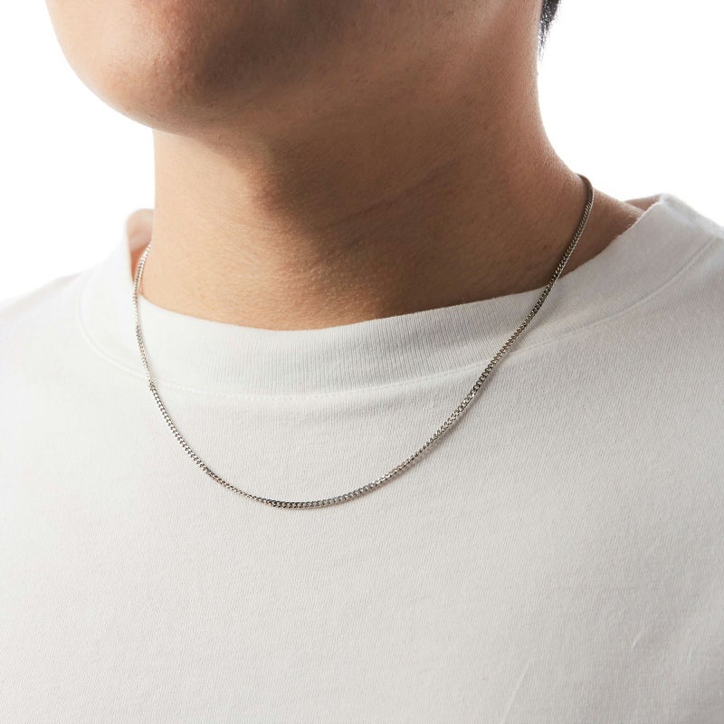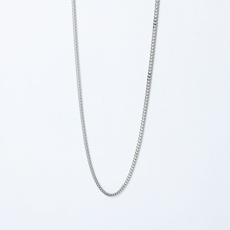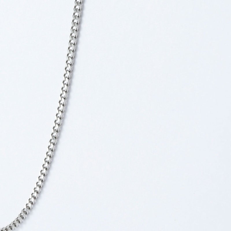 純プラチナを使用した2面喜平のご紹介です。プラチナならではの黒っぽい品のある輝きを放ちます。どんな場面でも合わせて頂きやすい、オーセンティックなデザインを一度お試しください。