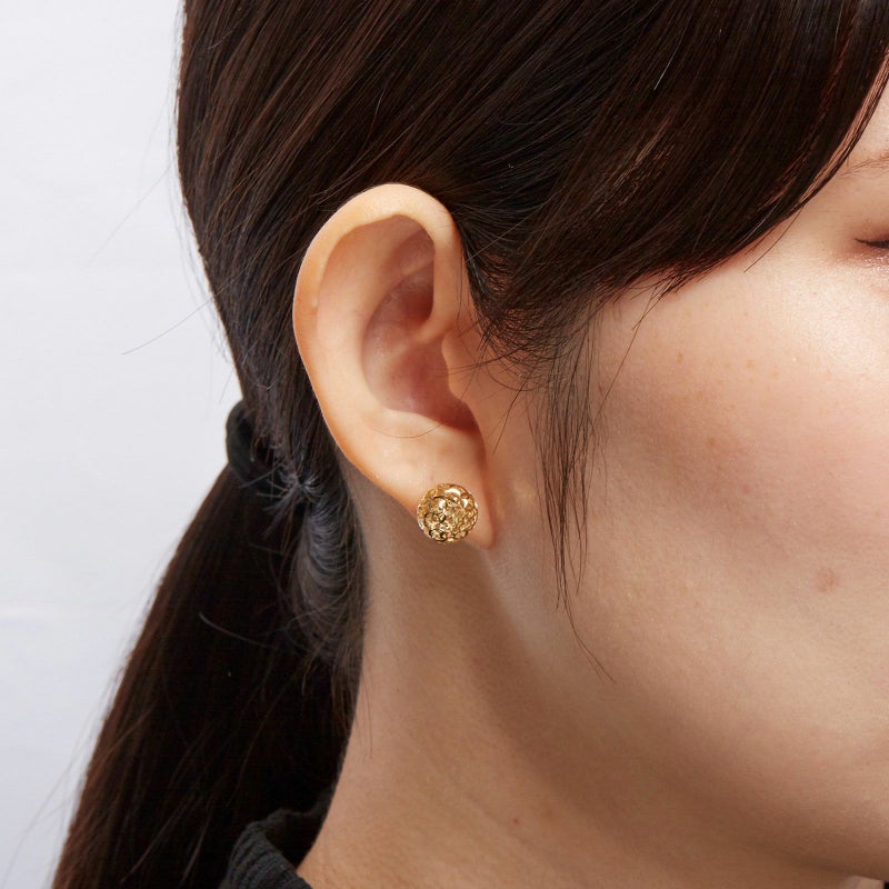 メッシュボールをピアスの先端にデザイン。美しいK18イエローゴールドのボールは、華やかな印象で耳元を彩ります。サイズは大きいけれど、軽やかなので耳に負担をかけずお楽しみいただけます。