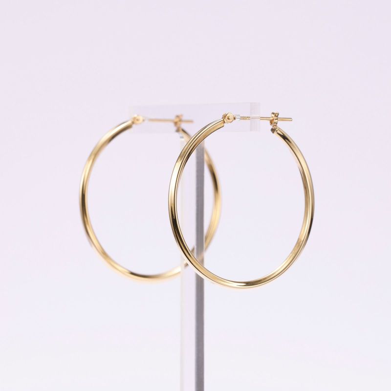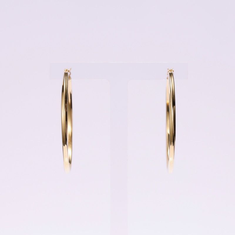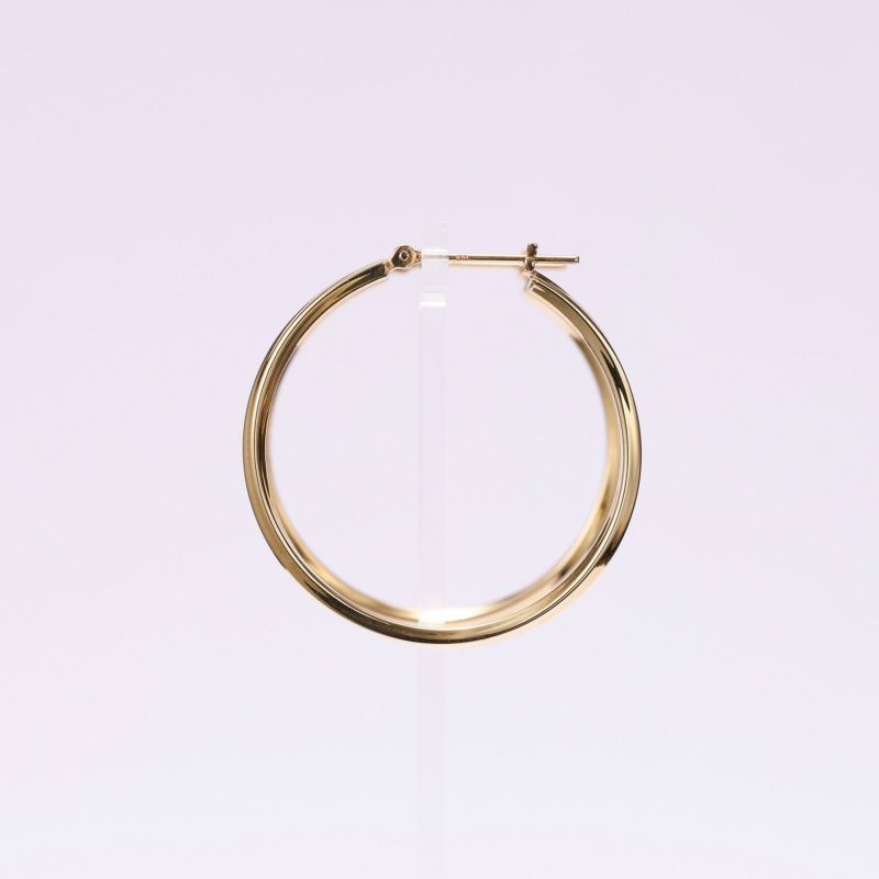K18イエローゴールドのフープタイプピアス。細い線を緩やかにひねり、繊細で上品な雰囲気のピアスです。シンプルで飽きの来ないデザインです。