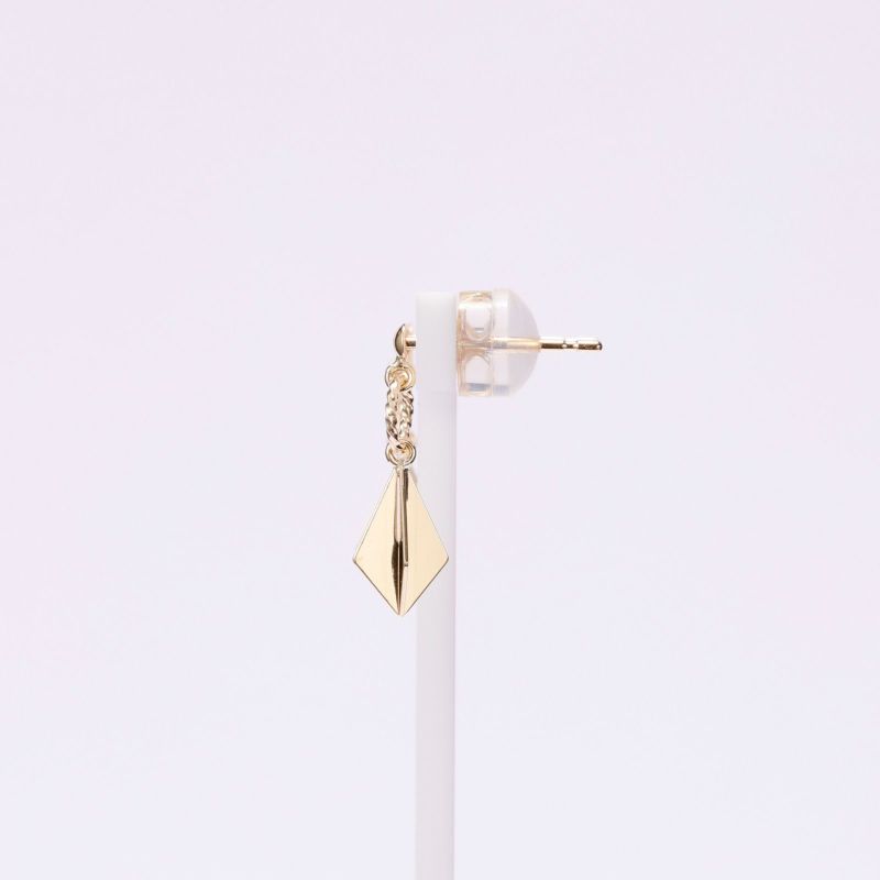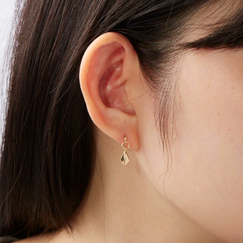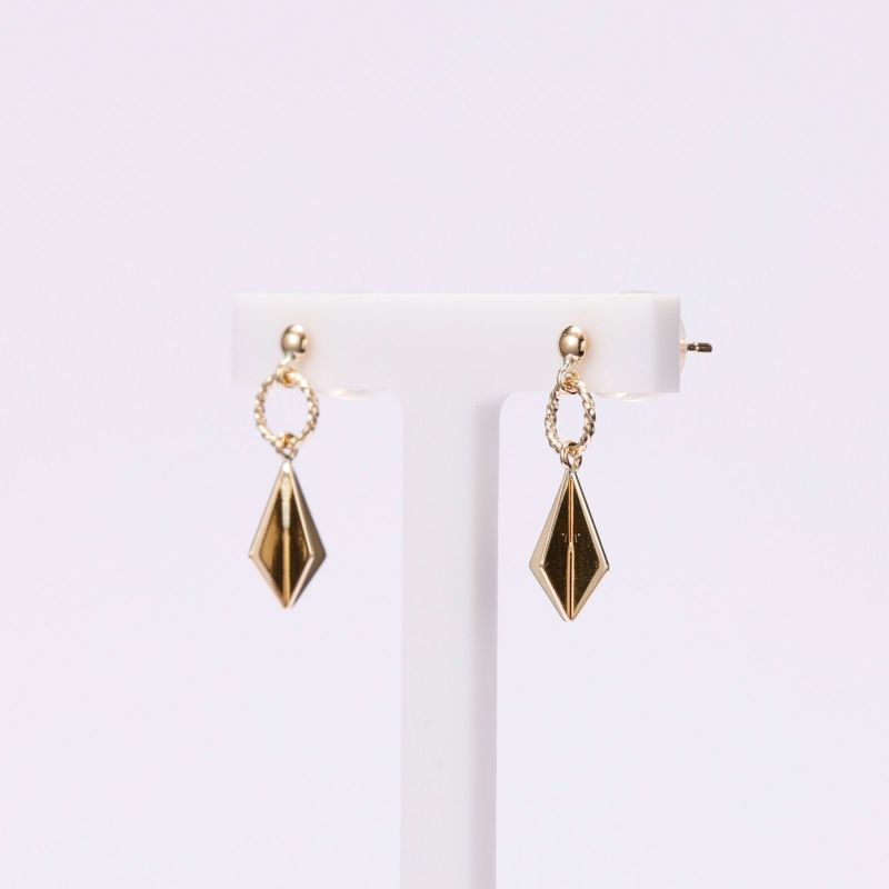 立体的でシャープなデザインのK18イエローゴールドピアスです。小振りながらも良く光をはね返すデザインです。
