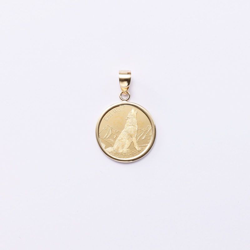 純金コイン ペンダントトップ (K18イエローゴールドフレーム付) 1/25oz ウルフ