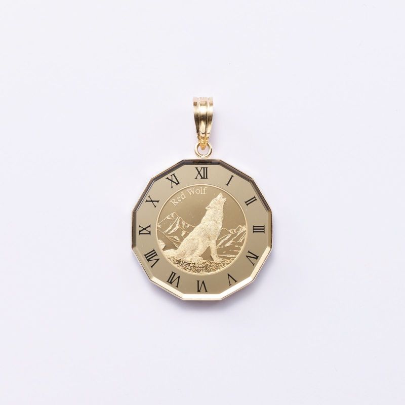 純金コイン ペンダントトップ (K18イエローゴールドフレーム付) 1/25oz ウルフ