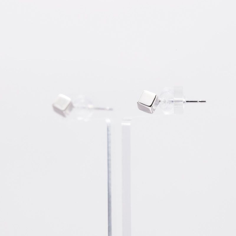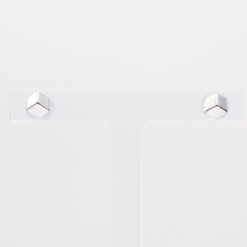 K10ホワイトゴールドの地金ピアスです。小ぶりなキューブデザインが耳元をおしゃれに仕上げてくれます。