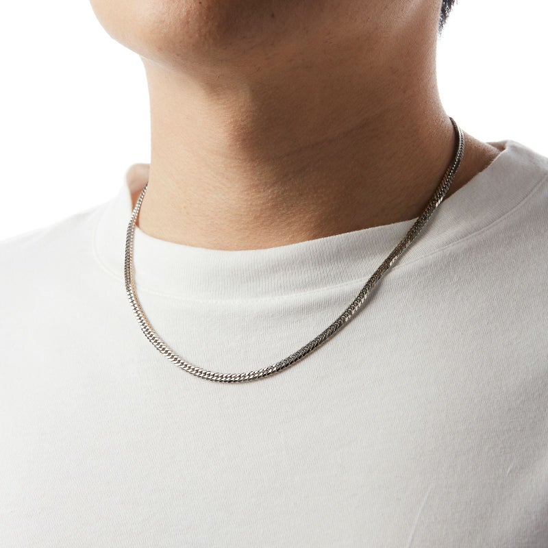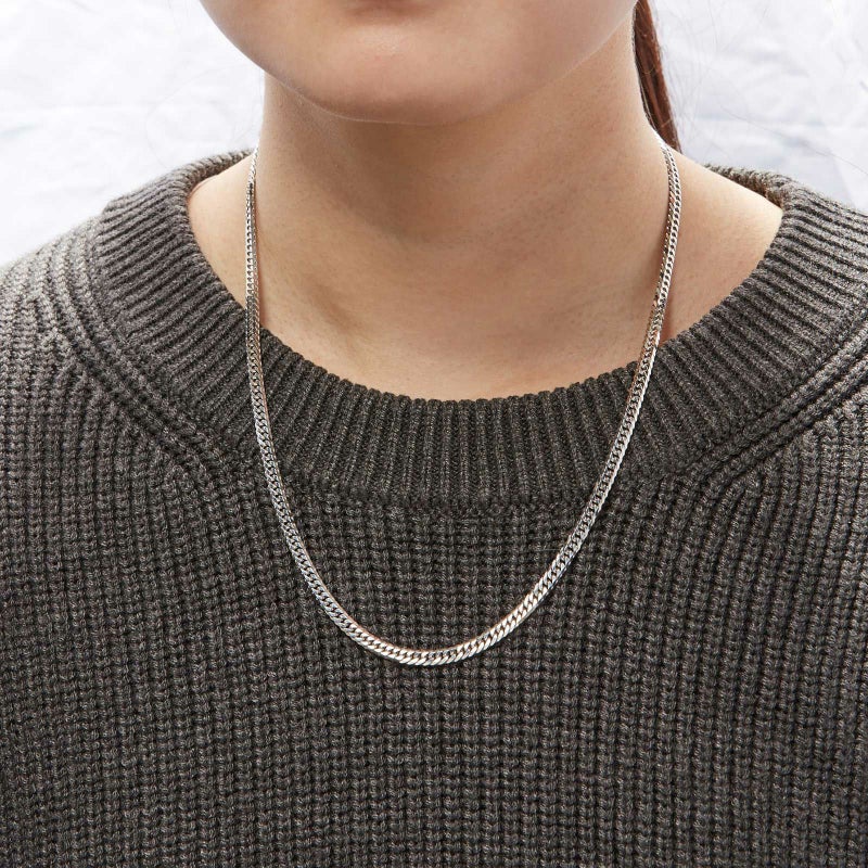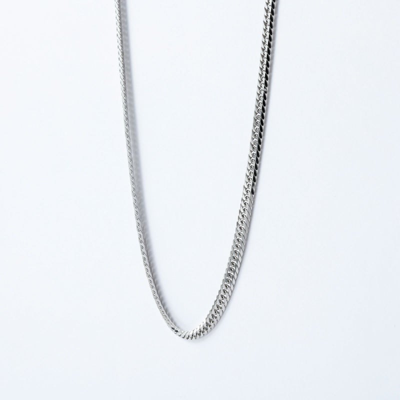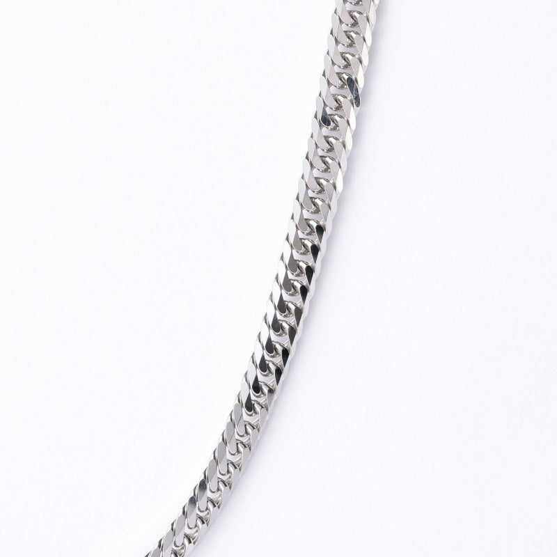 上下左右にカットを施した、輝きのある6面カット喜平です。幅広く見え、カットが多い分輝きが増すのが特徴です。シンプルなチェーンはユニセックスにご愛用いただけます。独立行政法人造幣局の検定マーク(※ホールマーク)入り。
