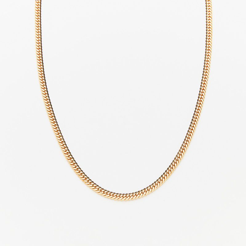 K18イエローゴールド・6面ダブルの喜平ネックレスです。シンプルなチェーンはユニセックスにご愛用いただけます。