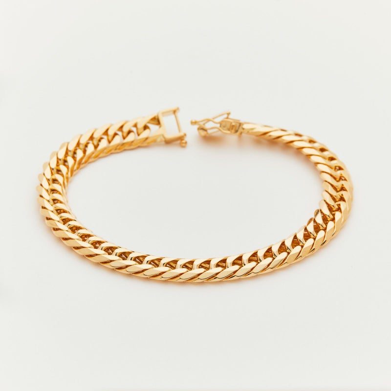 K18イエローゴールド・6面ダブルの喜平ブレスレットです。シンプルなチェーンはユニセックスにご愛用いただけます。