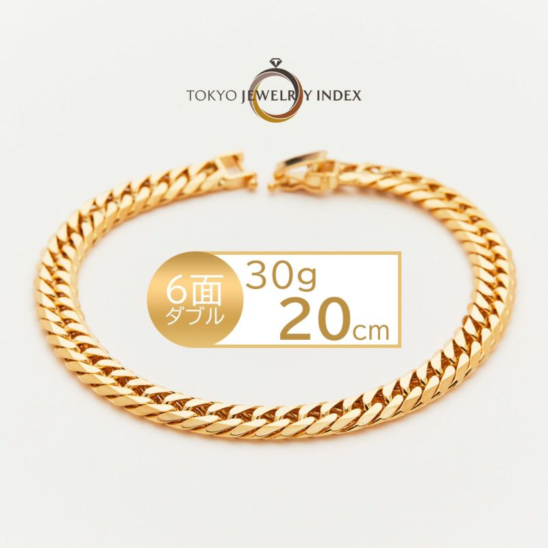 K18イエローゴールド 喜平ブレスレット 6面ダブル 30g 20cm