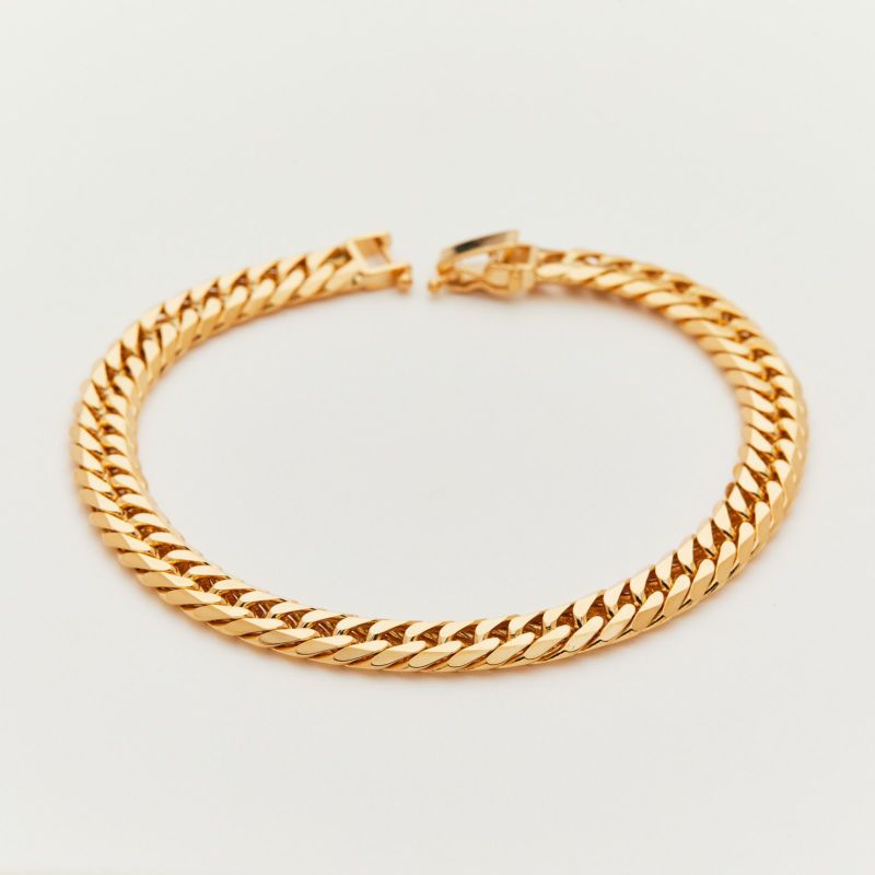 K18イエローゴールド・6面ダブルの喜平ブレスレットです。シンプルなチェーンはユニセックスにご愛用いただけます。