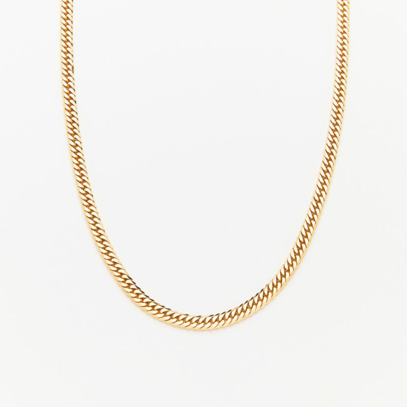 K18イエローゴールド・6面ダブルの喜平ネックレスです。シンプルなチェーンはユニセックスにご愛用いただけます。