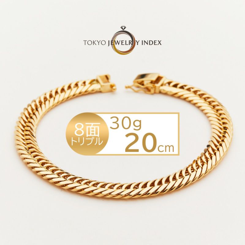 K18イエローゴールド 喜平ブレスレット 8面トリプル 30g 20cm