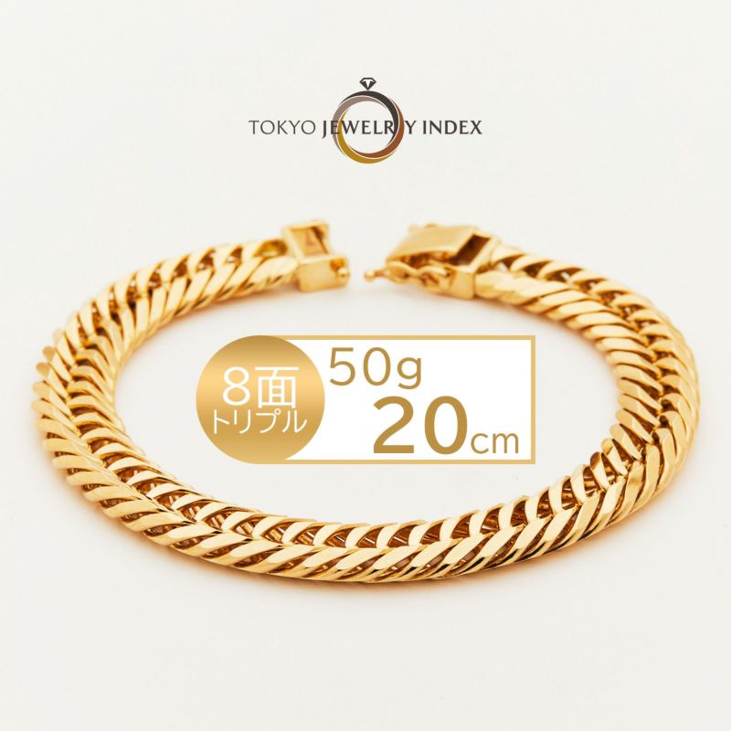 K18イエローゴールド 喜平ブレスレット 8面トリプル 50g 20cm