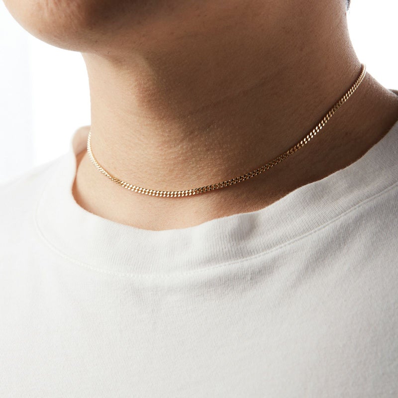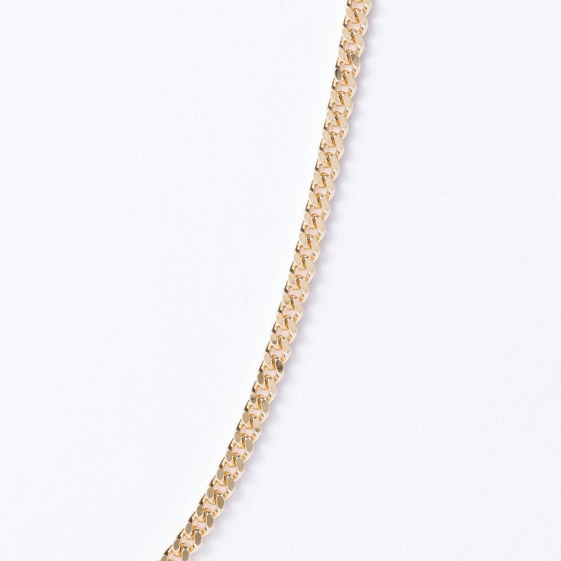 上下にカットを施した2面カット喜平です。K18イエローゴールドの輝きを楽しんで頂けます。シンプルなチェーンはユニセックスにご愛用いただけます。独立行政法人造幣局の検定マーク(※ホールマーク)入り。