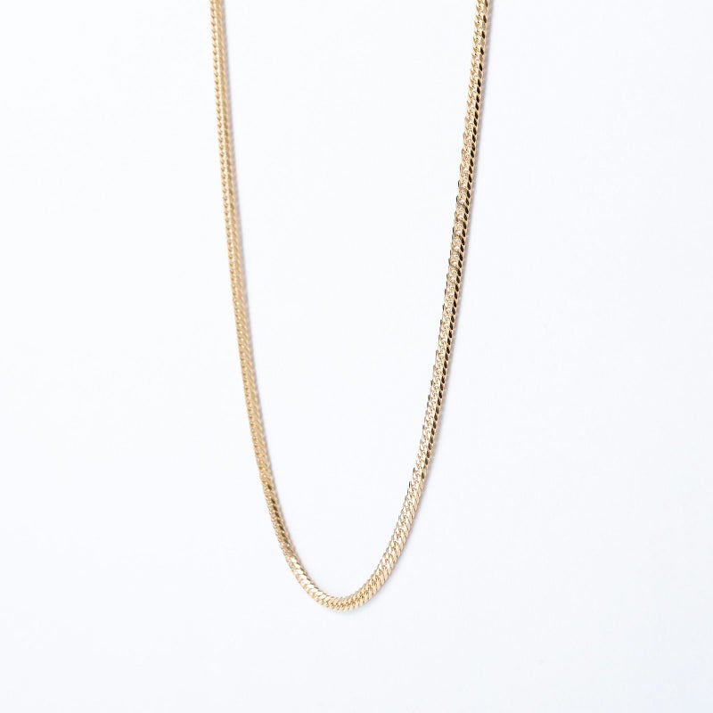 上下左右にカットを施した、輝きのある6面カット喜平です。幅広く見え、カットが多い分輝きが増すのが特徴です。シンプルなチェーンはユニセックスにご愛用いただけます。独立行政法人造幣局の検定マーク(※ホールマーク)入り。