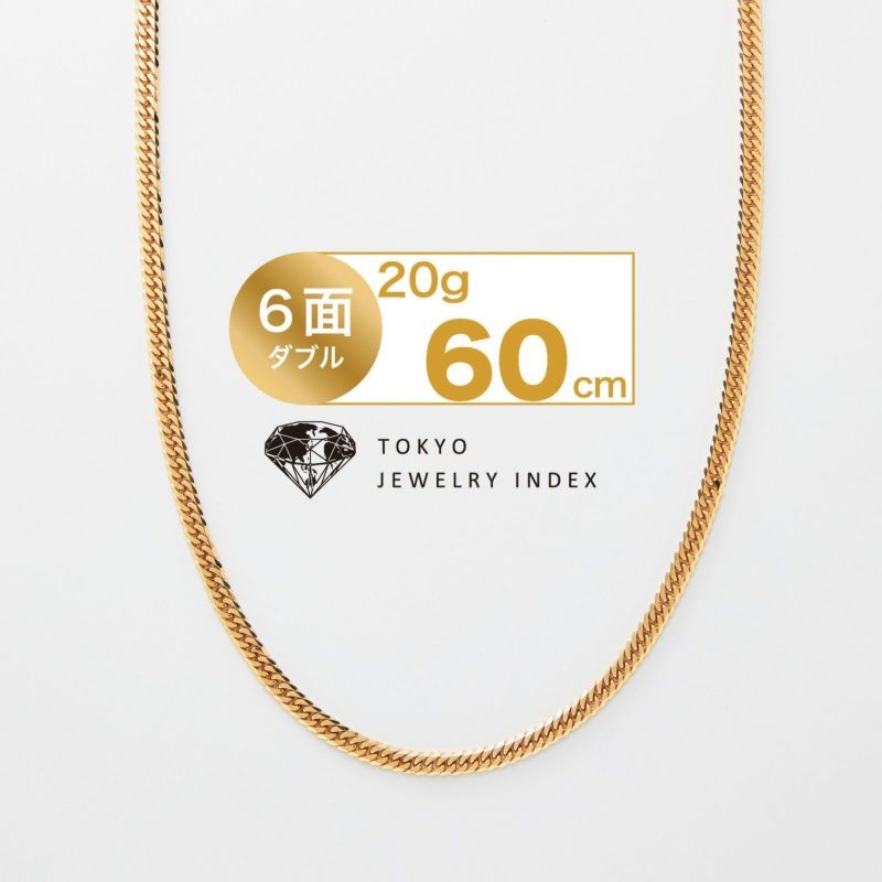 K18イエローゴールド 喜平ネックレス 6面 ダブル 20g 60cm