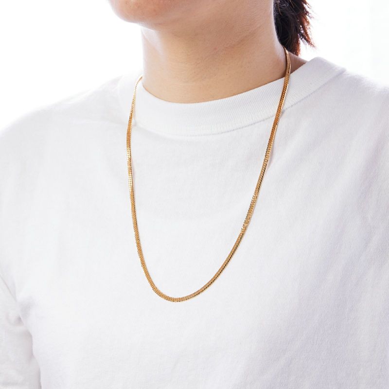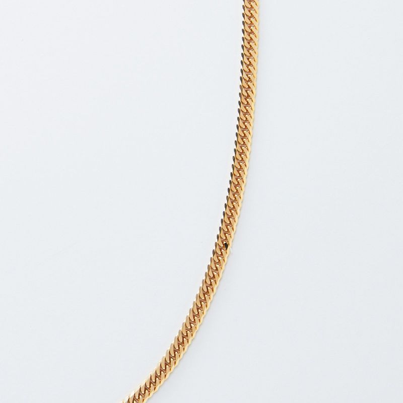 上下にカットを施した6面カット喜平です。K18イエローゴールドの輝きを楽しんで頂けます。シンプルなチェーンはユニセックスにご愛用いただけます。独立行政法人造幣局の検定マーク(※ホールマーク)入り。