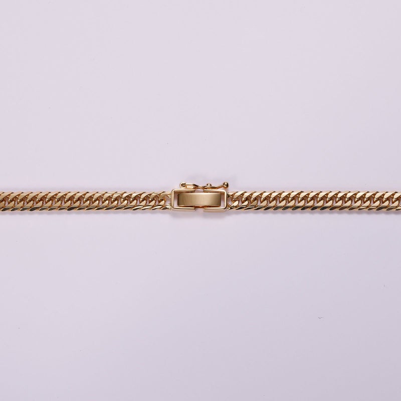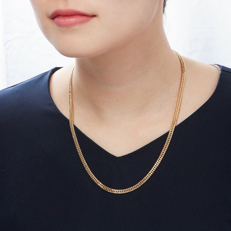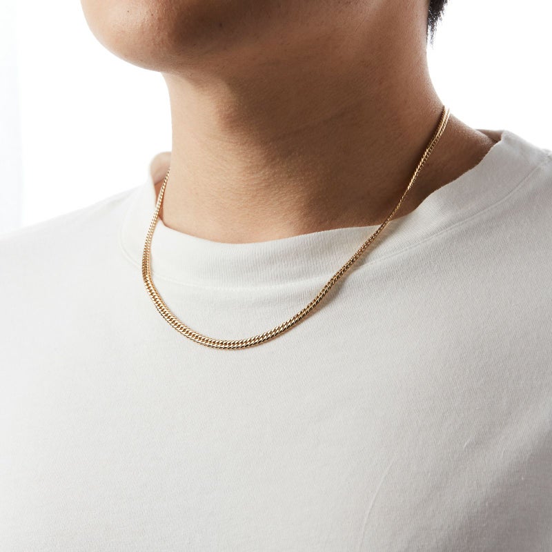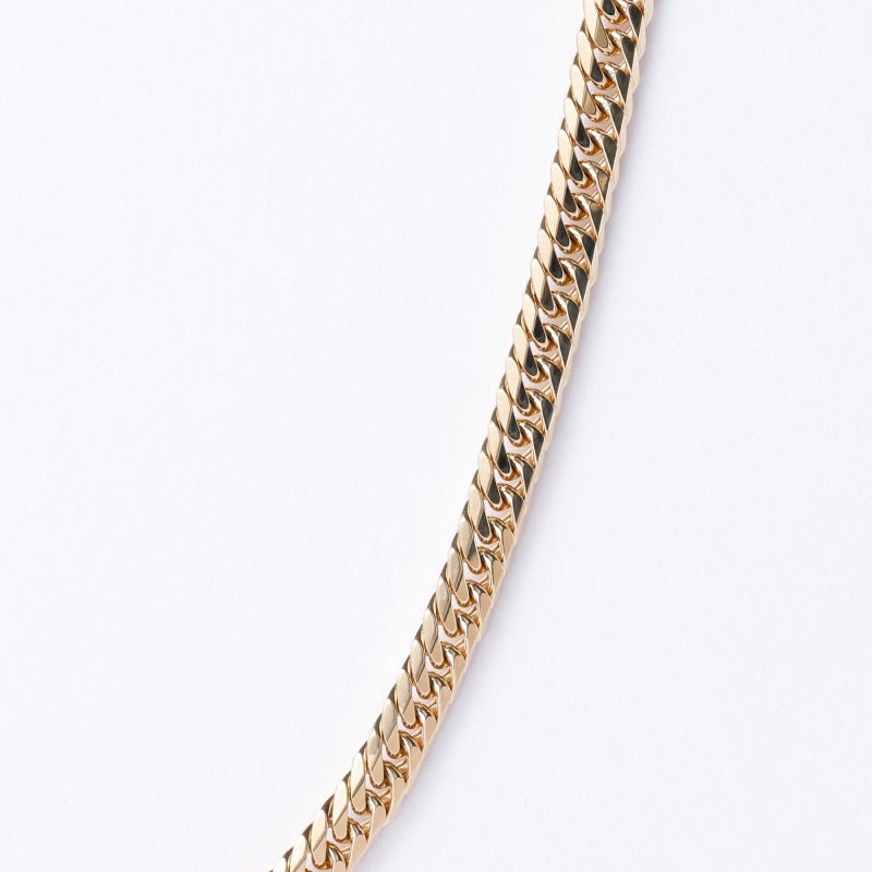 上下左右にカットを施した、輝きのある6面カット喜平です。幅広く見え、カットが多い分輝きが増すのが特徴です。シンプルなチェーンはユニセックスにご愛用いただけます。独立行政法人造幣局の検定マーク(※ホールマーク)入り。