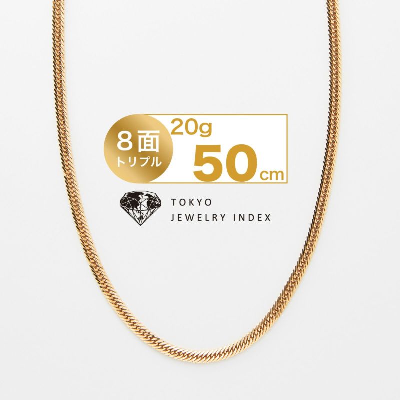 K18イエローゴールド 喜平ネックレス 8面 トリプル 20g 50cm