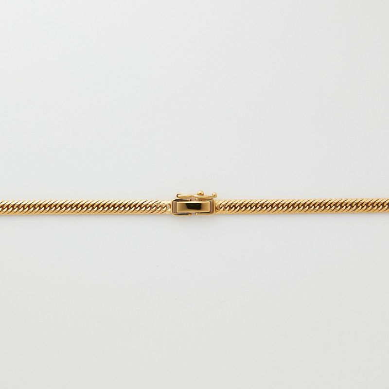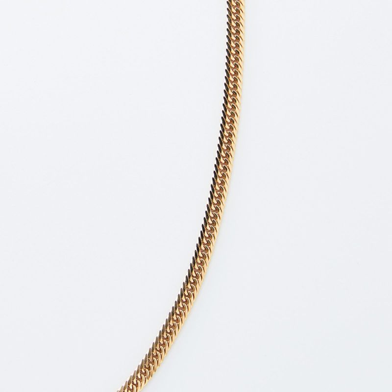 上下左右にカットを施した8面カット喜平です。K18イエローゴールドの輝きを楽しんで頂けます。シンプルなチェーンはユニセックスにご愛用いただけます。独立行政法人造幣局の検定マーク(※ホールマーク)入り。