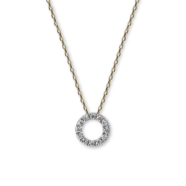 ラウンドフォルムにあしらわれたダイヤモンドがゴージャスなネックレス。ゴールドのチェーンでモード感をプラスしているワザありデザイン。