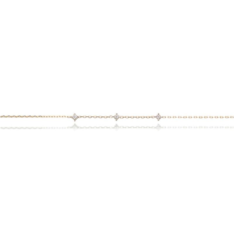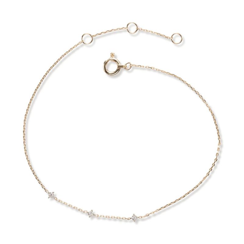 ダイヤモンドを3石あしらった上品なブレスレットです。サラサラ揺れるダイヤモンドは光を受けて輝きます。
