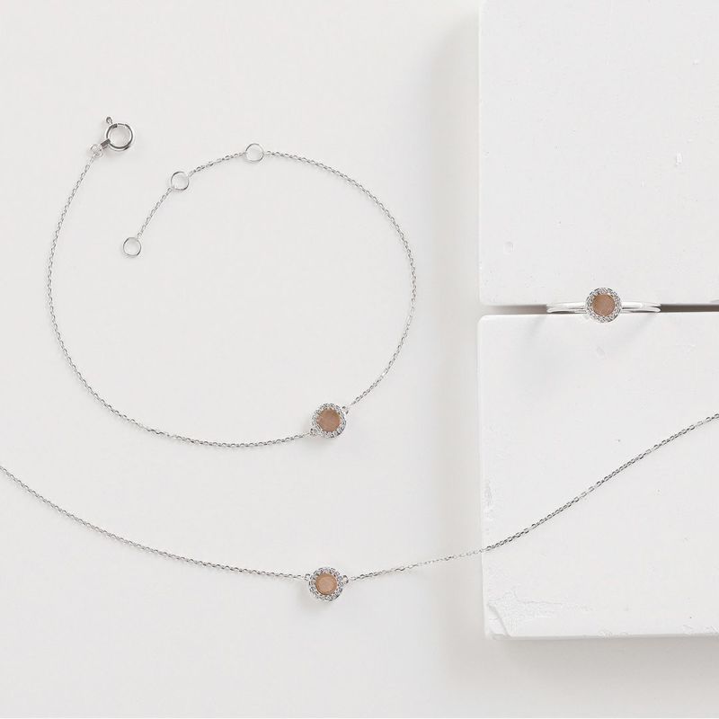 サティーナ仕上げのピンクゴールドは、とても上品に輝きます。地金のテクスチャーで全てをデザインしましたので、石の輝きとは違う美しさを感じて頂けます。