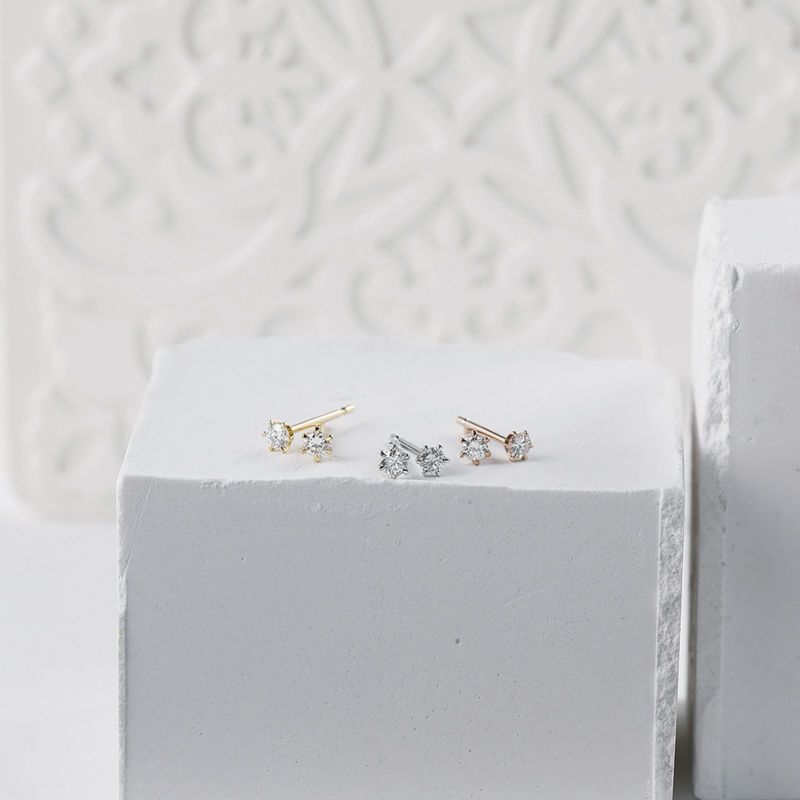 6本爪にダイヤモンドがセッティングされた定番ピアス。季節もTPOも選ばない、どんなシーンにも合わせやすいスタンダードアイテム。