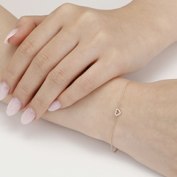 手首で愛らしくハートが輝きます。ワンランク上のおしゃれを楽しみたい方へぴったりのブレスレット。
