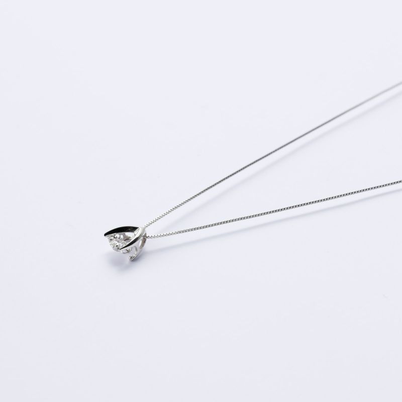 末広がりのシャープなペンダントトップに、ダイヤモンドを留めたダンシングストーンネックレスです。