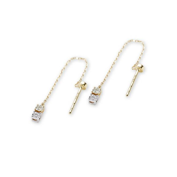 コレクションテーマ『コンビネーション』。ダイヤモンド2石使いのトップをコンビカラーで仕上げ、シンプルにアクセントを加えたピアス。
