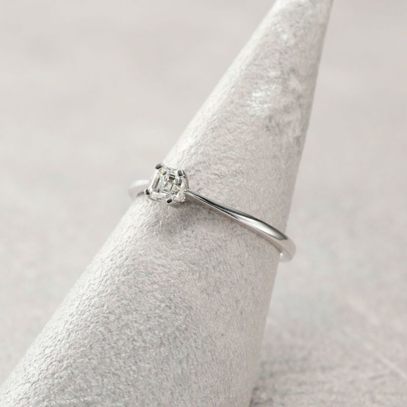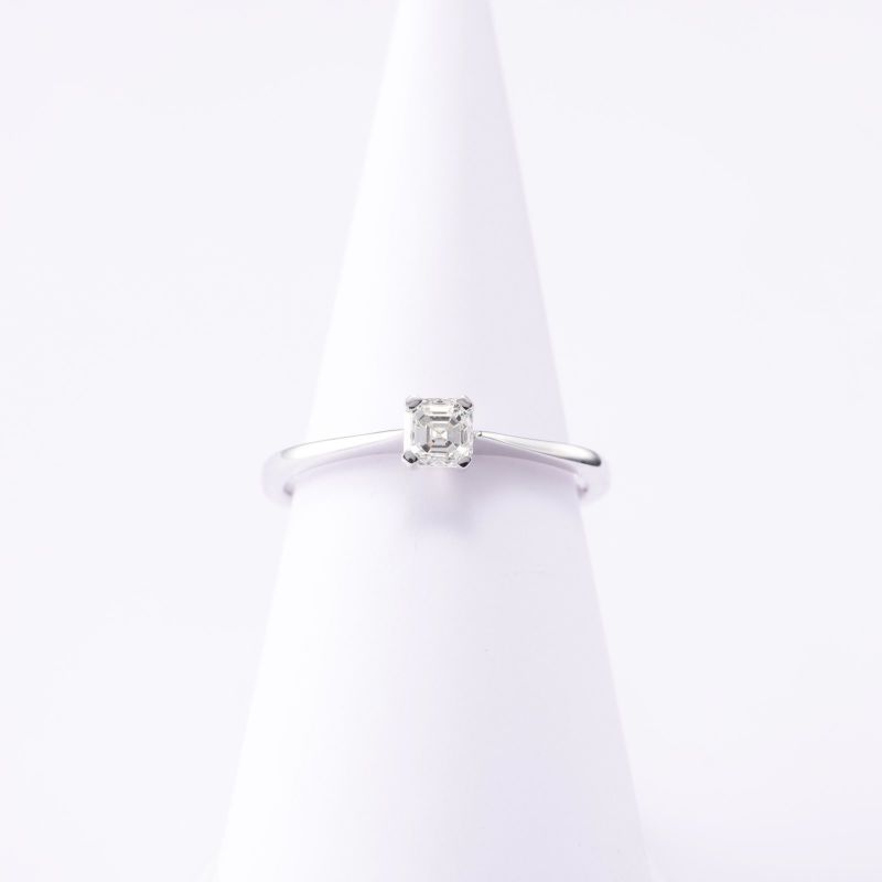 エメラルドカットのダイヤモンドをリングを1石留めたシンプルなリングです。エメラルドカット特有の、強い光を楽しんで頂けます。大きなダイヤモンドは、存在感があり末永く使っていただけるリングです。