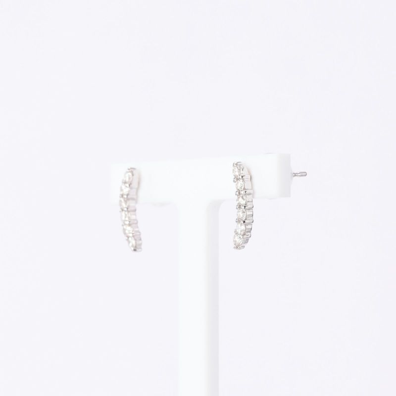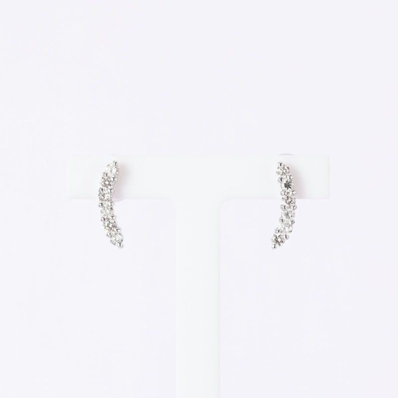 曲線のピアスをデザインしました。内側に向くダイヤモンドは、小顔効果があると言われています。シンプルでミニマルだけれど華やかさのあるデザインをお楽しみください。