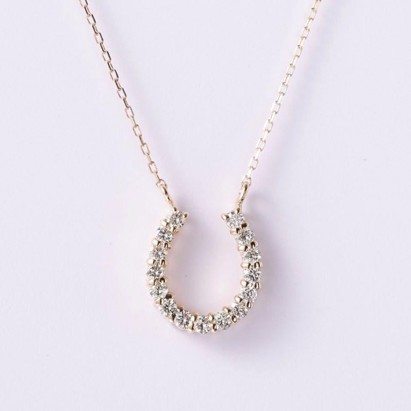 馬蹄のモチーフをダイヤモンドでデザインしました。馬蹄は幸せを貯める形と言われている、ずっと変わらないラッキーモチーフです。ダイヤモンドの色味をすべて揃えましたので、一様で上品な輝きを楽しんで頂けます。
