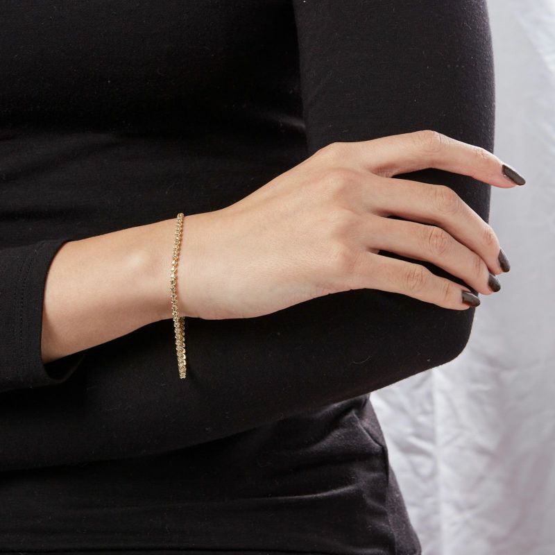 K18イエローゴールドのラインブレスレットです。ダイヤモンドを贅沢に使った存在感のある華やかなブレスレットです。